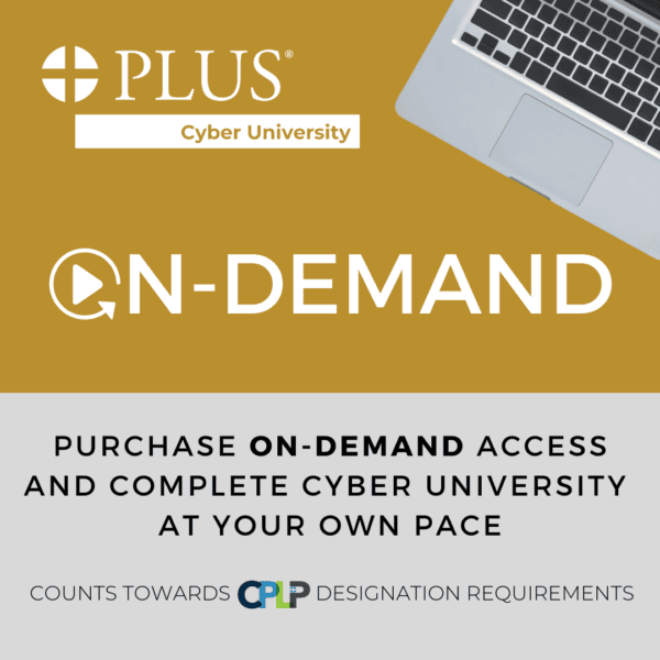 If you weren’t able to attend the live sessions, no need to worry! The Learner Workbook and on-demand recordings are now available for purchase. Cyber University On-Demand can be purchased by logging into the PLUS website > My Account > Online Shop > Courses.
